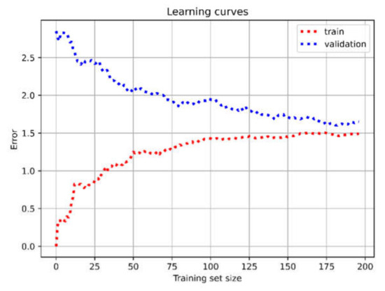Moreover, for SVM, we used learning-curve analysis [46] to examine the level of classification and monitor the presence of under-/overfitting problems. In our case, Figure 3 shows that, by increasing the training-set size, both training and validation curves converged to a very good reduction in error values, proving that the model did not need more data for further training, and tuning was in line with the trends of a good classifier.