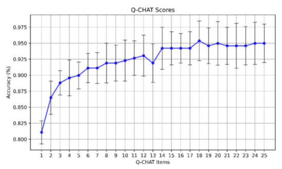 Accuracy selecting an increasing number of Q-CHAT items using SVM–recursive feature elimination (RFE) algorithm.