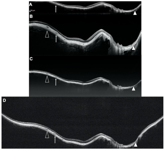- Spaide, R.F.; Koizumi, H.; Pozonni, M.C. Enhanced Depth Imaging Spectral-Domain Optical Coherence Tomography. Am. J. Ophthalmol. 2008, 146, 496–500. [Google Scholar] [CrossRef] [PubMed]