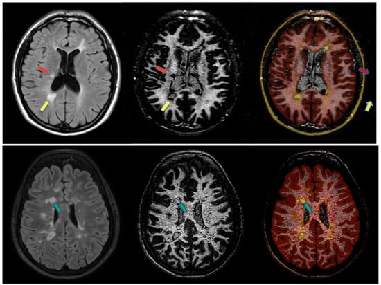 - Calabrese, M.; De Stefano, N.; Atzori, M.; Bernardi, V.; Mattisi, I.; Barachino, L.; Morra, A.; Rinaldi, L.; Romualdi, C.; Perini, P.; et al. Detection of Cortical Inflammatory Lesions by Double Inversion Recovery Magnetic Resonance Imaging in Patients With Multiple Sclerosis. Arch. Neurol. 2007, 64, 1416–1422. [Google Scholar] [CrossRef]