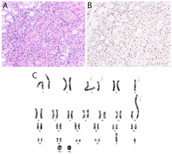 - Robinson, D.R.; Wu, Y.M.; Kalyana-Sundaram, S.; Cao, X.; Lonigro, R.J.; Sung, Y.S.; Chen, C.L.; Zhang, L.; Wang, R.; Su, F.; et al. Identification of recurrent NAB2-STAT6 gene fusions in solitary fibrous tumor by integrative sequencing. Nat. Genet. 2013, 45, 180–185. [Google Scholar] [CrossRef]