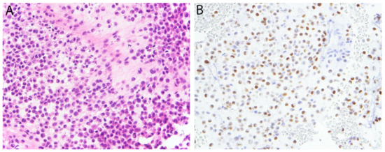 - Sullivan, L.M.; Atkins, K.A.; LeGallo, R.D. PAX immunoreactivity identifies alveolar rhabdomyosarcoma. Am. J. Surg. Pathol. 2009, 33, 775–780. [Google Scholar] [CrossRef]