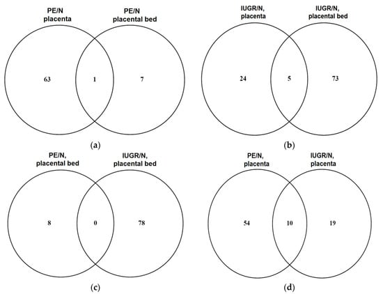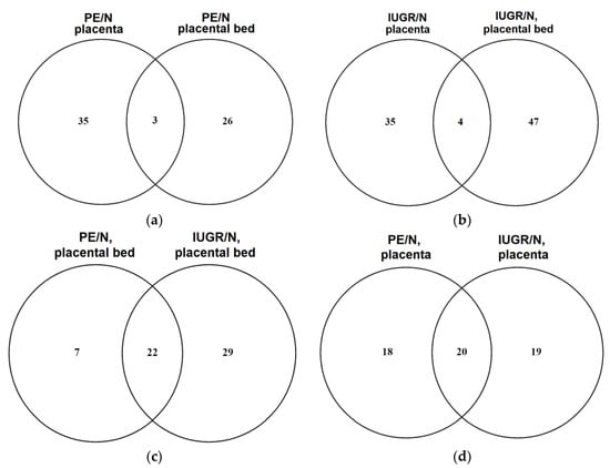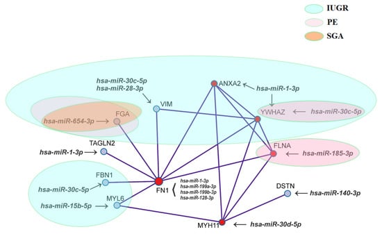 2.4. Bioinformatic Search for miRNA–Target Gene Pairs that Differentiate IUGR from PE