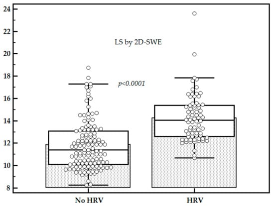 Higher mean LS values were found in patients with HRV as compared to those without, while mean platelet count values were significantly lower for patients with HRV, in accordance with other published studies [8,21,29].