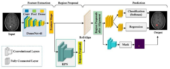 - The accurate localization and segmentation of tumor regions due to an effective region proposal network of DenseNet-41-based Mask-RCNN as it works in an end-to-end manner.