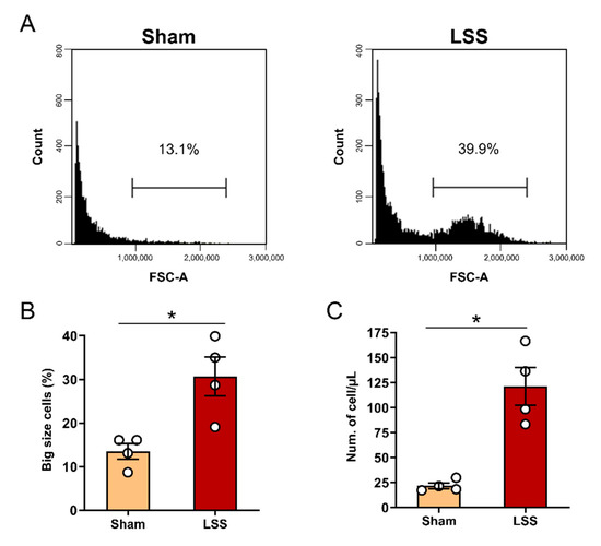 3.2. Flow Cytometric Cell Size and Number Analysis in CSF after LSS