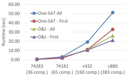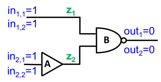- Smith, A.; Veneris, A.; Ali, M.F.; Viglas, A. Fault diagnosis and logic debugging using Boolean satisfiability. IEEE Trans. Comput. Aided Des. Integr. Circuits Syst. 2005, 24, 1606–1621. [Google Scholar] [CrossRef]