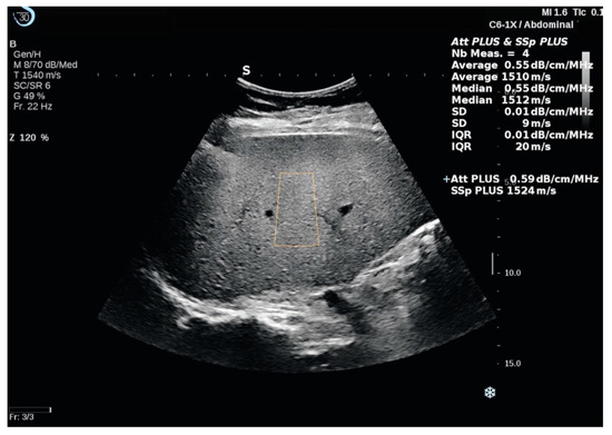 Ex vivo studies have revealed that the longitudinal speed of sound is lower in fat than in the healthy liver parenchyma [51]. Hepatic steatosis was associated with a decrease in the intrahepatic speed of sound [52]. An ultrasound-based technique that measures the speed of sound in the liver has been evaluated in a proof of concept study [53]. This method’s ability (Aixplorer ultrasound system) to assess liver steatosis was analyzed using magnetic MRI-PDFF as the control method [54]. A cut-off value ≤ 1.537 mm/µs had 80% sensitivity and 85.7% specificity in identifying steatosis. The speed of sound showed a solid correspondence to MRI-PDFF (R2 = 0.73) [54].