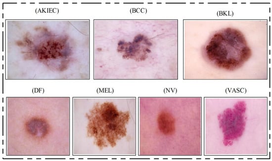 Sample skin lesion types collected from the HAM10000 dataset [].
