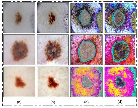 - Barata, C.; Celebi, M.E.; Marques, J.S. A survey of feature extraction in dermoscopy image analysis of skin cancer. IEEE J. Biomed. Health Inform. 2019, 23, 1096–1109. [Google Scholar] [CrossRef] [PubMed]