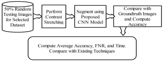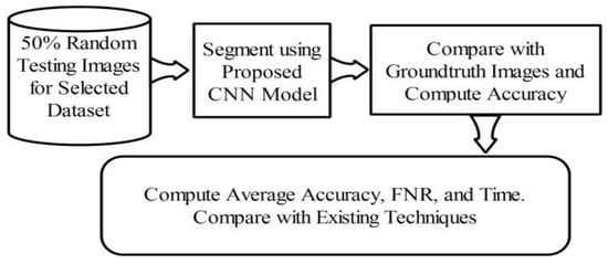 In the third convolutional layer, the filter size was , the number of channels was 64, the number of filters was 128, and the stride was . The weights and the bias matrix were updated using Equations (10) and (11). Later, the fully connected and softmax layers were added and training was performed.