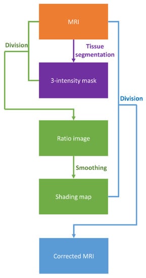- Vovk, U.; Pernus, F.; Likar, B. A review of methods for correction of intensity inhomogeneity in MRI. IEEE Trans. Med. Imaging 2007, 26, 405–421. [Google Scholar] [CrossRef] [PubMed]