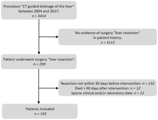 Winter KS, Greif V, Crispin A, Burgard C, Forbrig R, Liebig T, Trumm CG, Stahl R. CT-Guided Drainage of Fluid Collections Following Liver Resection: Technical and Clinical Outcome of 143 Patients during a 14-Year Period. Diagnostics. 2021; 11(5):826. https://doi.org/10.3390/diagnostics11050826