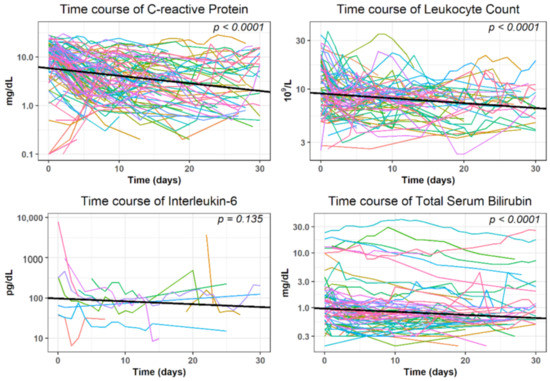 | CRP | Leukocyte Count | Interleukin-6 | Total Serum Bilirubin | |||||||||