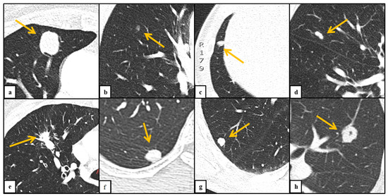 - Snoeckx, A.; Reyntiens, P.; Desbuquoit, D.; Spinhoven, M.J.; Van Schil, P.E.; van Meerbeeck, J.P.; Parizel, P.M. Evaluation of the solitary pulmonary nodule: Size matters, but do not ignore the power of morphology. Insights Imaging 2018, 9, 73–86. [Google Scholar] [CrossRef] [PubMed]
