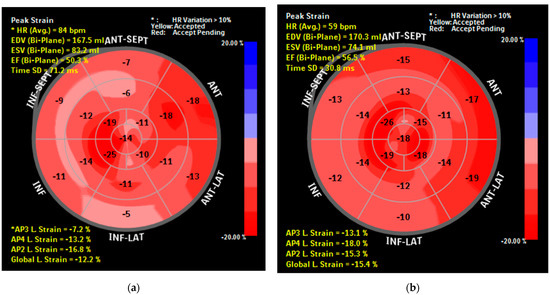- Karlsen, S.; Dahlslett, T.; Grenne, B.; Sjøli, B.; Smiseth, O.; Edvardsen, T.; Brunvand, H. Global longitudinal strain is a more reproducible measure of left ventricular function than ejection fraction regardless of echocardiographic training. Cardiovasc. Ultrasound 2019, 17, 18. [Google Scholar] [CrossRef]