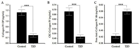 3.2. Comparison of the Levels of CIV-DP, CIC-CIV, and Free ACIVAbs IgG between the T2D and Control Groups