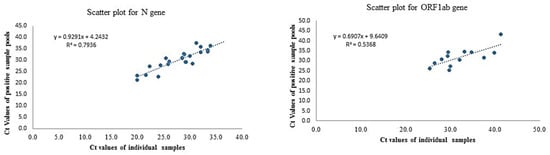 Data were analyzed for descriptive statistics and presented as a number (%) for categorical variables and mean ± standard deviation (SD) for continuous variables. Ct values were compared using Paired t-test. Regression analysis with slope and intercept along with a 95% confidence interval was determined in the pooling sample study.