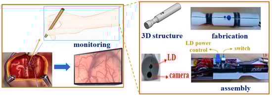 20] in surgery because the system is not equipped with either an optical source or a camera; they are independent of each other. Moreover, the construction of a system is complex. Therefore, the system is inconvenient for the surgeon to use the camera and the light source, respectively. It also takes a lot of hands for the operation.