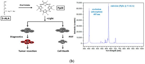 - Hadjipanayis, C.G.; Stummer, W. 5-ALA and FDA approval for glioma surgery. J. Neuro-Oncol. 2019, 141, 479–486. [Google Scholar] [CrossRef] [PubMed]