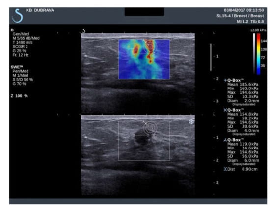 Ultrasound elastography is an ultrasound technology which detects malignant breast lesions by measuring the changes of the elastic properties of breast tissue. There are two types of ultrasound elastography, strain and shear wave elastography (SWE) [1,2,3,4].