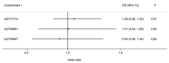 According to the logistic regression analysis, no association with pCAD was detected (Figure 3).