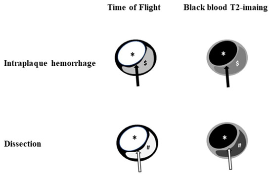 - Li, D.; Zhao, H.; Chen, X.; Chen, S.; Qiao, H.; He, L.; Li, R.; Xu, J.; Yuan, C.; Zhao, X. Identification of intraplaque haemorrhage in carotid artery by simultaneous non-contrast angiography and intraPlaque haemorrhage (SNAP) imaging: A magnetic resonance vessel wall imaging study. Eur. Radiol. 2018, 28, 1681–1686. [Google Scholar] [CrossRef] [PubMed]