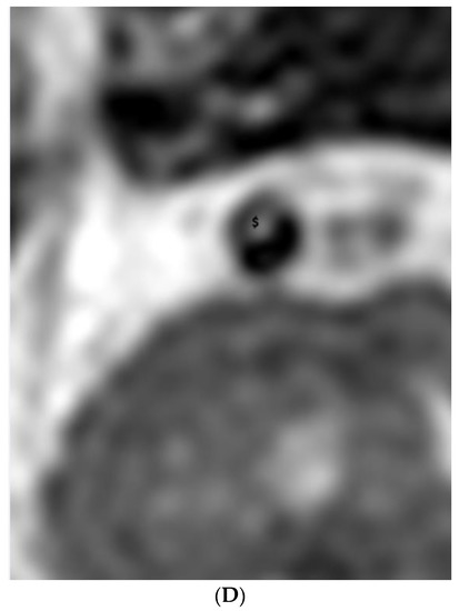 - Ota, H.; Yarnykh, V.L.; Ferguson, M.S.; Underhill, H.R.; Demarco, J.K.; Zhu, D.C.; Oikawa, M.; Dong, L.; Zhao, X.; Collar, A.; et al. Carotid intraplaque hemorrhage imaging at 3.0-T MR imaging: Comparison of the diagnostic performance of three T1-weighted sequences. Radiology 2010, 254, 551–563. [Google Scholar] [CrossRef]