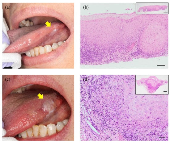 - Izumo, T. Oral premalignant lesions: From the pathological viewpoint. Int. J. Clin. Oncol. 2011, 16, 15–26. [Google Scholar] [CrossRef]