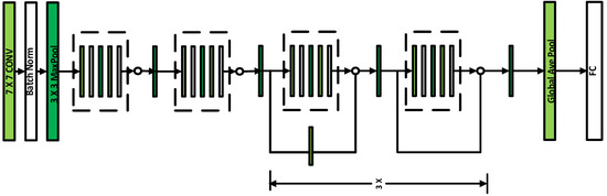 - He, K.; Zhang, X.; Ren, S.; Sun, J. Deep residual learning for image recognition. In Proceedings of the IEEE Conference on Computer Vision and Pattern Recognition, Las Vegas, NV, USA, 27–30 June 2016; pp. 770–778. [Google Scholar]