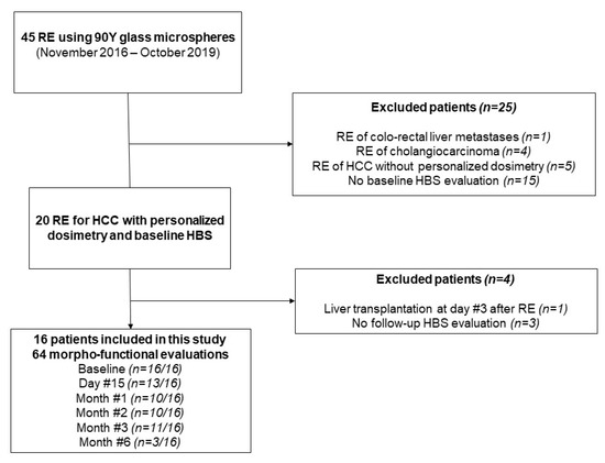 To our knowledge, no data are available on these dynamic functional changes occurring over time in the treated and nontreated liver parenchyma following RE. This study, therefore, aimed to monitor the changes in regional liver function through repeated HBS examinations in HCC patients treated by RE using personalized dosimetry.