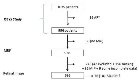 - Riba-Llena, I.; Jarca, C.I.; Mundet, X.; Tovar, J.L.; Orfila, F.; López-Rueda, A.; Nafría, C.; Fernández, J.L.; Castañé, X.; Domingo, M.; et al. Investigating silent strokes in hypertensives: A magnetic resonance imaging study (ISSYS): Rationale and protocol design. BMC Neurol. 2013, 13, 130. [Google Scholar] [CrossRef] [PubMed]