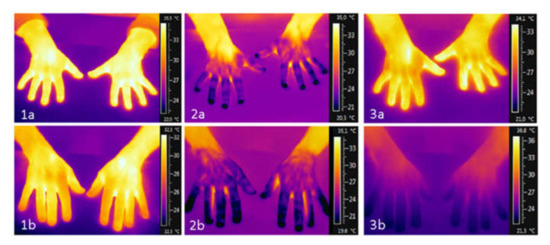 Thermal imaging has previously been deemed useful in the management of various diseases, such as breast cancer and diabetes [21]: in breast cancer, thermal imaging seems interesting as a detection tool; in diabetes, it has proven useful in the diagnosis of long-term sequelae, such as peripheral neuropathy [22,23]. Furthermore, thermal imaging is applied in rheumatology to distinguish patients with pRP from patients with systemic sclerosis [24]. In addition to being investigated in diagnostic settings, thermal imaging has been reported as a useful screening tool for large-scale fever assessments during pandemics to prevent the dispersion of the infection [25]. The possibility of automated readings of thermographic images by machine learning methods carries great potential. However, the use of machine learning requires large image databases [26], which are not necessarily available.