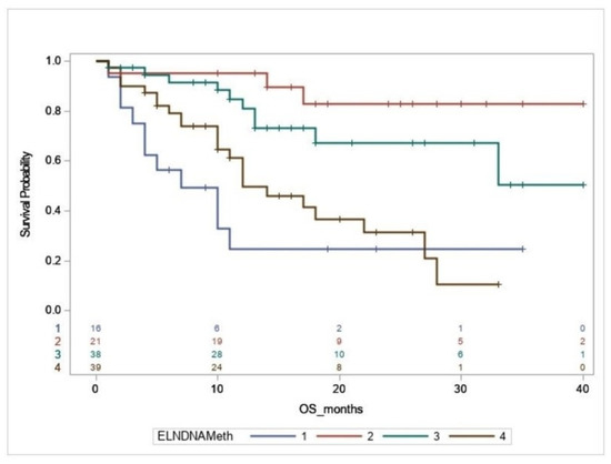 - Eisfeld, A.-K.; Kohlschmidt, J.; Mims, A.; Nicolet, D.; Walker, C.J.; Blachly, J.S.; Carroll, A.J.; Papaioannou, D.; Kolitz, J.E.; Powell, B.E.; et al. Additional gene mutations may refine the 2017 European LeukemiaNet classification in adult patients with de novo acute myeloid leukemia aged <60 years. Leukemia 2020, 34, 3215–3227. [Google Scholar] [CrossRef]
