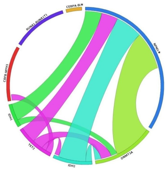 - Metzeler, K.H.; Herold, T.; Rothenberg-Thurley, M.; Amler, S.; Sauerland, M.C.; Görlich, D.; Schneider, S.; Konstandin, N.P.; Dufour, A.; Bräundl, K.; et al. Spectrum and prognostic relevance of driver gene mutations in acute myeloid leukemia. Blood 2016, 128, 686–698. [Google Scholar] [CrossRef] [PubMed]