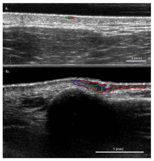 - Bard, R.L. High-Frequency Ultrasound Examination in the Diagnosis of Skin Cancer. Dermatol. Clin. 2017, 35, 505–511. [Google Scholar] [CrossRef]