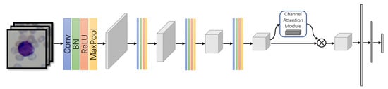 A compact CNN model with attention mechanism embedding was designed to perform the cell classification. It consists of a group of convolution layers—a channel attention module and two fully-connected layers as shown in Figure 2.