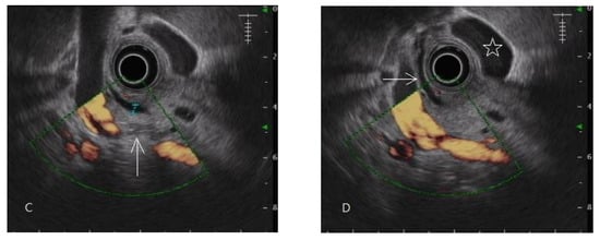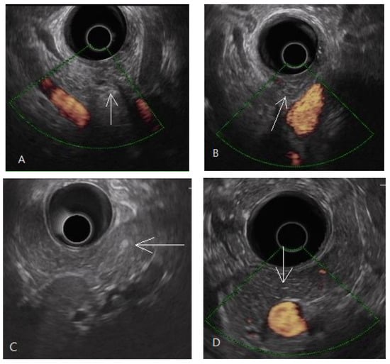 - Wilcox, C.M.; Gress, T.; Boermeester, M.; Masamune, A.; Lévy, P.; Itoi, T.; Varadarajulu, S.; Irisawa, A.; Levy, M.; Kitano, M.; et al. International consensus guidelines on the role of diagnostic endoscopic ultrasound in the management of chronic pancreatitis. Recommendations from the working group for the international consensus guidelines for chronic pancreatitis in collaboration with the International Association of Pancreatology, the American Pancreatic Association, the Japan Pancreas Society, and European Pancreatic Club. Pancreatology 2020, 20, 822–827. [Google Scholar] [CrossRef]