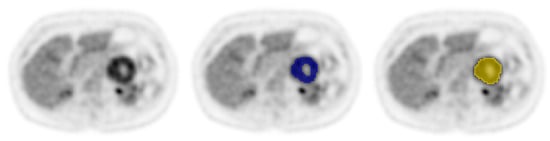 - Cheebsumon, P.; Van Velden, F.H.; Yaqub, M.; Frings, V.; De Langen, A.J.; Hoekstra, O.S.; Lammertsma, A.A.; Boellaard, R. Effects of Image Characteristics on Performance of Tumor Delineation Methods: A Test-Retest Assessment. J. Nucl. Med. 2011, 52, 1550–1558. [Google Scholar] [CrossRef] [PubMed]