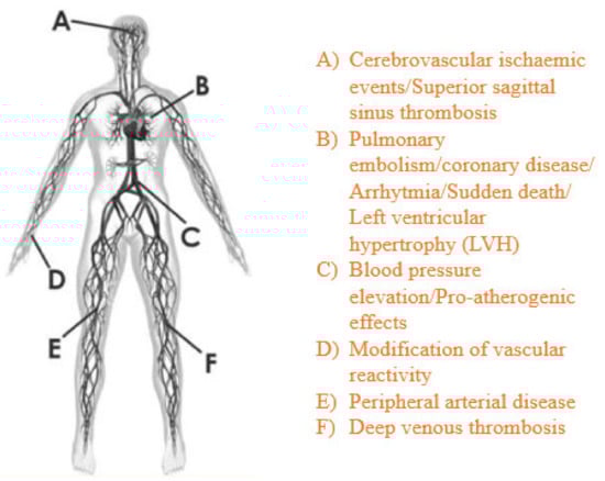 Several adverse cardiovascular effects of AASs have been reported [,,], such as a decrease in plasma HDL cholesterol levels [] and sudden death among young athletes, which is a result of cardiovascular diseases, mainly hypertrophic cardiomyopathy [,,,] (Figure 2). Several adverse effects can involve reproductive, musculoskeletal, endocrine, renal, and hematological systems as well as the liver, and some psychological effects have also been reported [,].