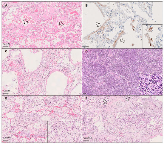 - Sauter, J.L.; Baine, M.K.; Butnor, K.J.; Buonocore, D.J.; Chang, J.C.; Jungbluth, A.A.; Szabolcs, M.J.; Morjaria, S.; Mount, S.L.; Rekhtman, N.; et al. Insights into pathogenesis of fatal COVID-19 pneumonia from histopathology with immunohistochemical and viral RNA studies. Histopathology 2020, 77, 915–925. [Google Scholar] [CrossRef] [PubMed]