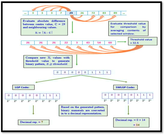 Illustration of LBP and SWLBP procedure.
