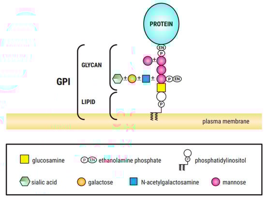 - Kinoshita, T. Biosynthesis and biology of mammalian GPI-anchored proteins. Open Biol. 2020, 10, 190290. [Google Scholar] [CrossRef] [Green Version]