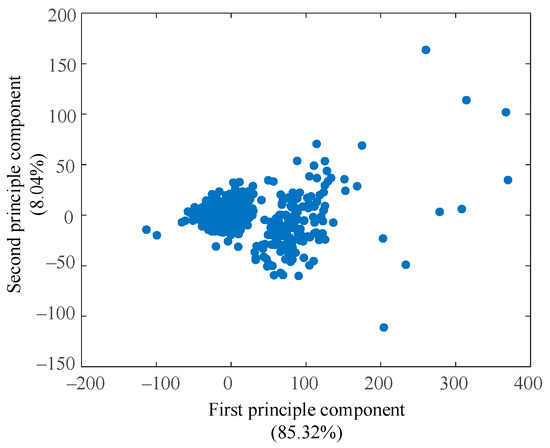 A principal component analysis (PCA) was conducted for an intuitive understanding of the dataset. Figure 2 illustrated data distribution of the first two principal components, which contained 93.96% of data variability (85.32% and 8.04%, respectively). The third component contained only 2.43% of variability, which could be ignored in visualization.
