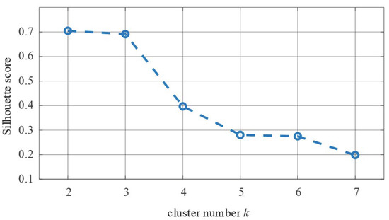 The Silhouette score was used to validate the clustering result. The Silhouette score corresponded to different cluster number and was calculated after clustering using the K-means algorithm. Results are listed in Table 1. Figure 3 shows the tendency of the Silhouette score with respect to the cluster number.