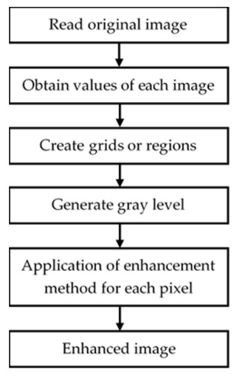 The improvement of the images is one of the most relevant stages, since a deficient preprocessing would lead to a drastic decrease in the quality of any classifier, no matter how good the results may be, so the techniques used to improve the quality of the images and, above all, to highlight those characteristics that will be most useful for the classifier will be shown below. The proposal made for image processing aims to improve the quality of the images, so that the greatest number of attributes of interest can be extracted, discarding those that are not useful for the further development of the work [33]. In Section 3.1.1, Section 3.1.2, Section 3.1.3 and Section 3.1.4, the procedures applied to the images will be detailed.