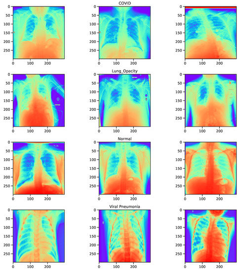 The COVID-19 Radiography Database was used to carry out experiments in this research [22]. This dataset was collected from multiple international sources, at time different timescales [62,63,64,65]. A summary of the dataset is presented in Table 2. All the X-ray images are in Portable Network Graphics (PNG) file format and of 299 × 299 pixel resolution.