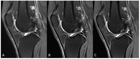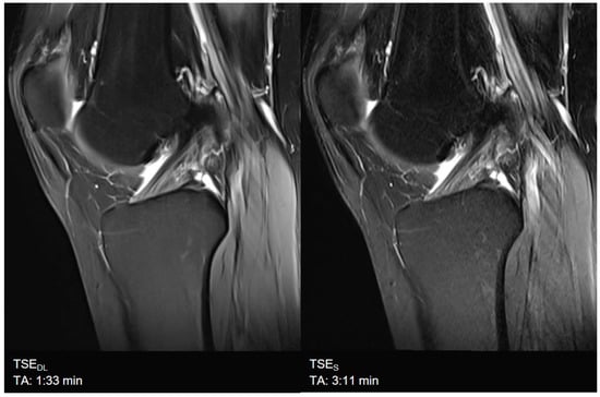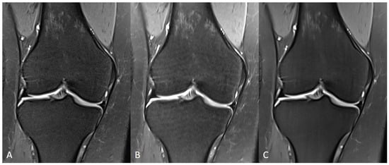 - Matcuk, G.R.; Gross, J.S.; Fields, B.; Cen, S. Compressed Sensing MR Imaging (CS-MRI) of the Knee: Assessment of Quality, Inter-reader Agreement, and Acquisition Time. Magn. Reson. Med. Sci. 2020, 19, 254–258. [Google Scholar] [CrossRef] [Green Version]
