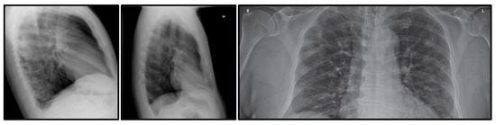 Samples of removed X-ray images. The first two samples are removed because they were captured from the side view, while the third sample is removed because of the incomplete information on the frontal chest X-ray image.