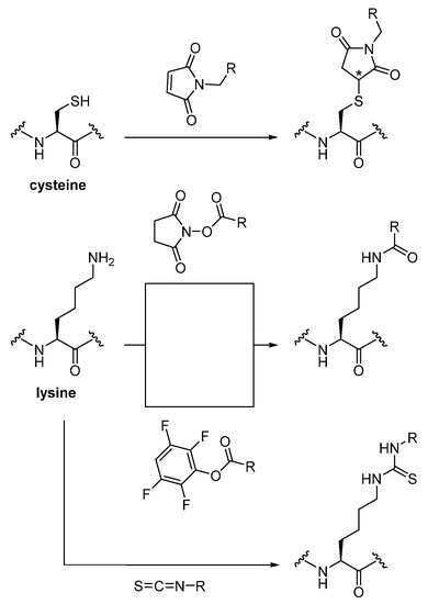 - Massa, S.; Xavier, C.; Muyldermans, S.; Devoogdt, N. Emerging site-specific bioconjugation strategies for radioimmunotracer development. Expert Opin. Drug Deliv. 2016, 13, 1149–1163. [Google Scholar] [CrossRef] [PubMed]
